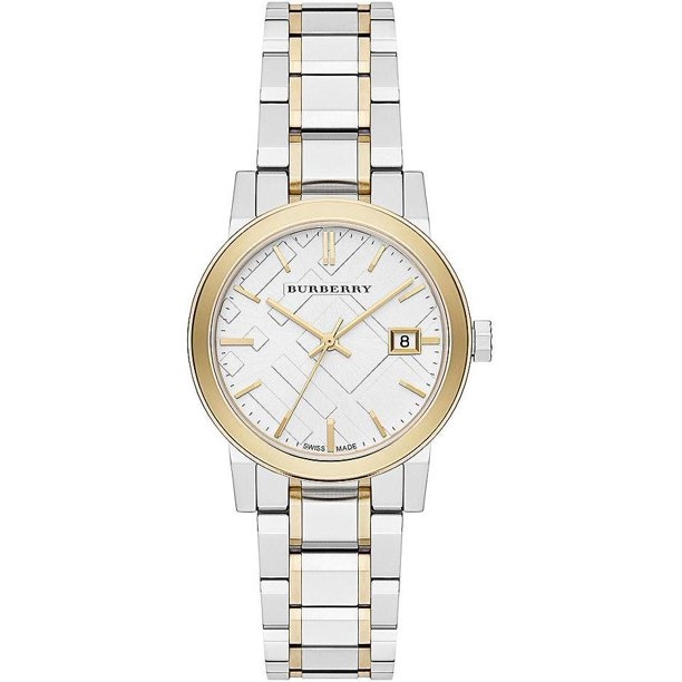 Vi har fundet Burberry Ampquotthe Cityampquot Dameur Bu fra Burberry hos watchmen i kategorien . Køb Burberry quotThe Cityquot Gold ur til damer med gratis fragt. BURBERRY quotThe Cityquot Gold er et rigtigt luksus designerur med urkasse på 34mm og 8mm tykkelse. Urkasse er sølvfarvet med en urkrans i guld. Urkronen har et fint BURBERRY mønste